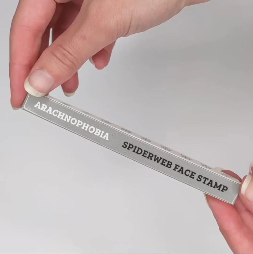 Create a spellbinding look with this amazing Arachnophobia Spiderweb Face Stamp & Eyeliner from Ashley Hay Design! One end has a small web stamp in black and the other has a brush liner, also black. The web stamp size is approx. 6.95mm. Vegan and cruelty-free.