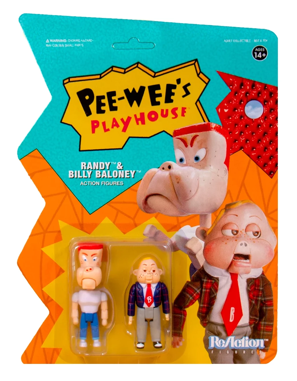 It’s everyone’s favorite little knuckleheads – Randy and Billy Baloney! Part of Super7’s debut wave of 3.75″ ReAction Figures for Pee-wee’s Playhouse, the cardback for each figure can be cut out and joined together with the others to create your own Pee-wee’s Playhouse set!