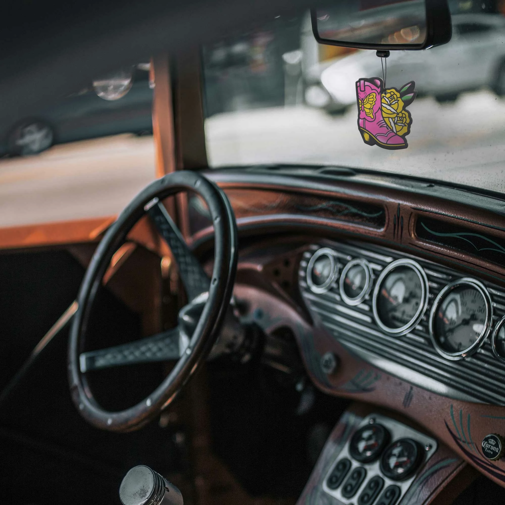 Let those country roads take you home. Ride in need of a little refreshing? Our cute as can be Country Queen air freshener has a fun bubblegum scent and looks great hanging from your rearview mirror.
