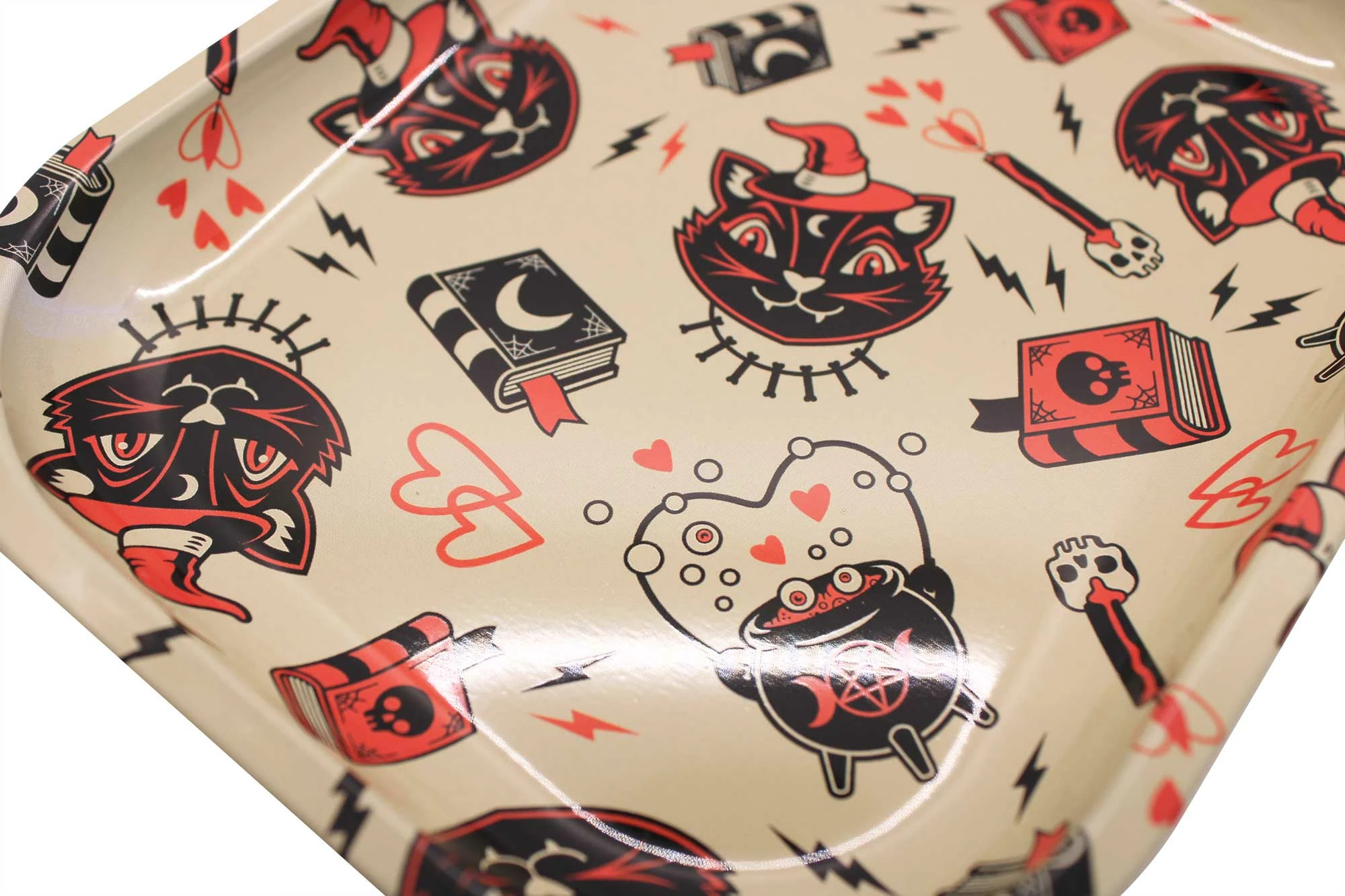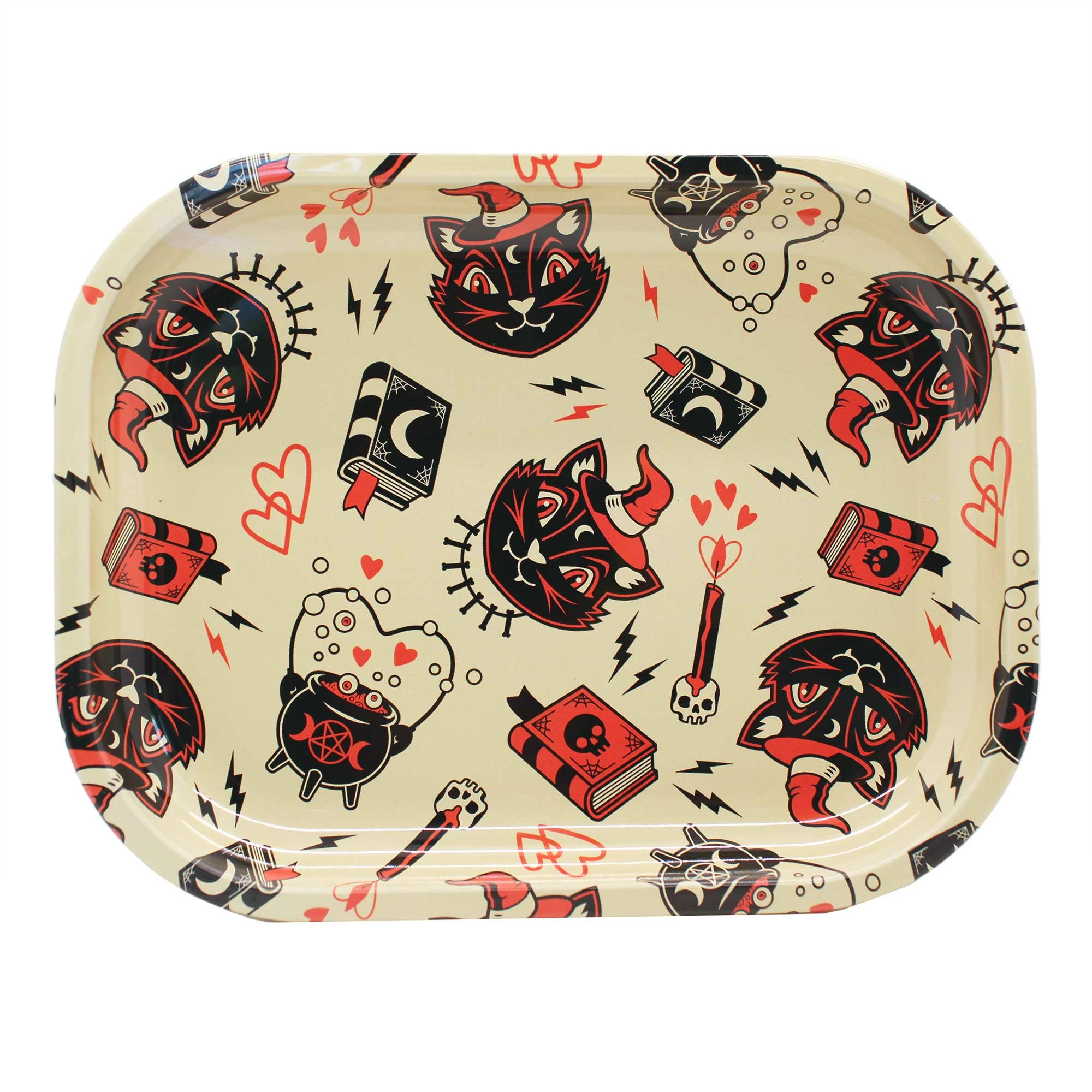 Black cats, spell books and bubbling cauldrons? Yes please! This metal tray was created with artwork created exclusively for Sourpuss by Nik Scarlett and is perfect for its intended use or as a trinket dish!