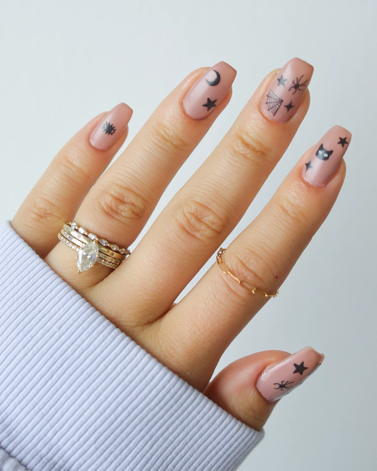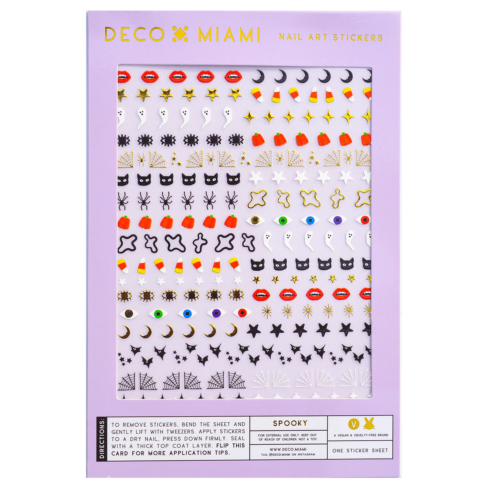 Boo! The Spooky sheet is inspired by all things creepy & halloweeny – from candy corn to bats to spiderwebs to black cats and more! You’ll get over 190 stickers in a variety of sizes, enough for plenty of manicures. Easy to apply and remove, so anyone can have fun with nail art!